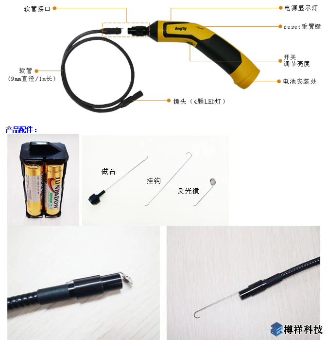反光鏡:在內(nèi)窺鏡看不到的地方(如側(cè)面),可用專用反光鏡顯示物體周邊情況。