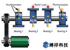四個(gè)雙列軸承被上一個(gè)軸安裝為如圖1所示的***靈敏度的加速度計(jì)被安裝在每個(gè)軸承箱上。四個(gè)熱電偶連接到每個(gè)軸承的外圈,記錄軸承溫度監(jiān)視潤(rùn)滑目的。與各種故障模式結(jié)束試驗(yàn)了多套進(jìn)行了。時(shí)域特征表明,大多數(shù)的軸承疲勞的時(shí)間期間的材料損傷累積期間被消耗掉,而裂紋擴(kuò)展和發(fā)展的時(shí)期較短。這意味著,如果使用傳統(tǒng)的基于閾值的狀態(tài)監(jiān)測(cè)方法,可用于維修人員的響應(yīng)時(shí)間災(zāi)難性故障之前,在這種軸承檢測(cè)到缺陷之后響應(yīng)很短。這可以檢測(cè)早期缺損的預(yù)后的方法是要求使有足夠的緩沖時(shí)間可用于維護(hù)和后勤安排。