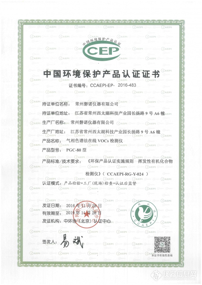近日,磐諾PGC-80在線氣相色譜儀順利通過中***環(huán)境保護產(chǎn)品認證!這不僅表明磐諾在線氣相色譜儀是名副其實的 “環(huán)保產(chǎn)品”,它更在一定程度上證明了磐諾為減少環(huán)境污染和能源浪費、***參與環(huán)境保護所作的努力和行動!
