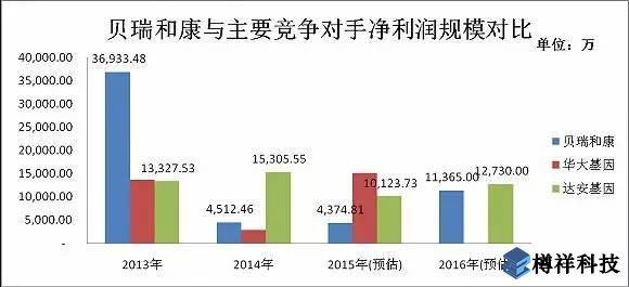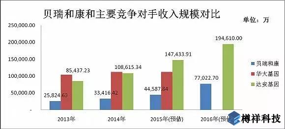 但是如果要完成2017年2.284億的業(yè)績承諾,并不那么容易。就競爭環(huán)境而言,貝瑞和康有一個***的競爭對手華大基因。根據(jù)公開信息,華大基因已遞交IPO資料。就2015年12月華大基因報送的材料來看,貝瑞和康的收入規(guī)模不及華大基因。2015年上半年華大基因?qū)崿F(xiàn)收入5.61億元,凈利潤為7565萬元,收入來源主要是生育健康類以及復(fù)雜疾病類的檢測服務(wù)。而貝瑞和康2015年同期的收入僅為8860萬元,凈利潤為1843萬元,公司體量差距可想而知。