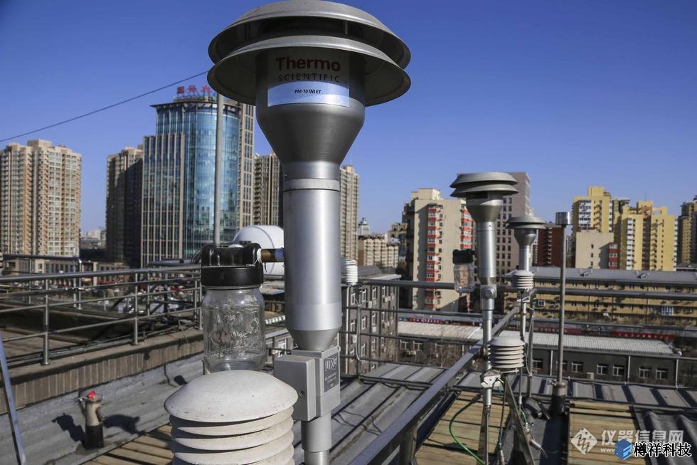 位于樓頂?shù)目諝獗O(jiān)測設備正在24小時監(jiān)測北京市空氣污染數(shù)據(jù)。