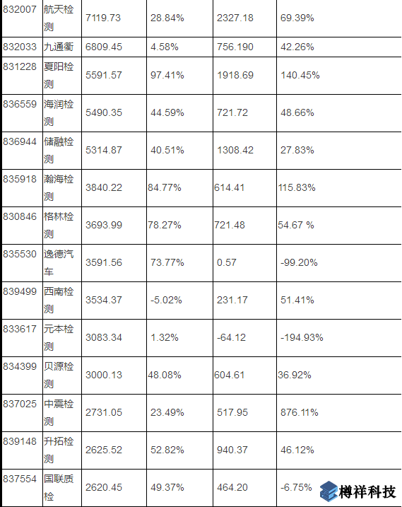 ***內(nèi)上市檢測公司營業(yè)額、凈利潤一覽