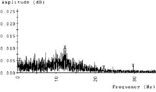 如果出現(xiàn)問題,也會(huì)在頻譜中找到驅(qū)動(dòng)和驅(qū)動(dòng)速度。與振動(dòng)一樣,1倍轉(zhuǎn)速意味著對(duì)機(jī)器的不平衡影響。在圖4中,風(fēng)扇速度顯示剛好超過25 Hz。在圖5中,運(yùn)行速度為1,800RPM泵電機(jī)可以在低于30 Hz的頻率下識(shí)別。在這兩種情況下,趨勢這些峰值的幅度可以告訴我們很多關(guān)于機(jī)器狀況的事情。通常,該峰值將處于或接近頻譜的本底噪聲。振幅將在直接驅(qū)動(dòng)泵組件上爬升的兩個(gè)***常見原因是由于未對(duì)準(zhǔn)或耦合損壞。