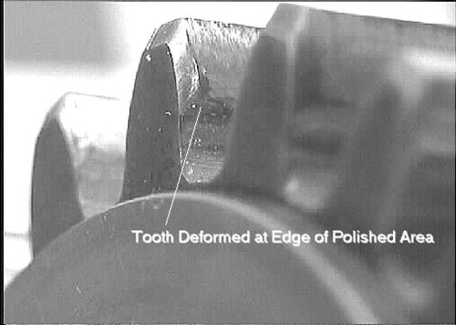 圖7.這張照片是受損牙齒邊緣的特寫鏡頭。注意接觸區(qū)域末端的鐓粗金屬。